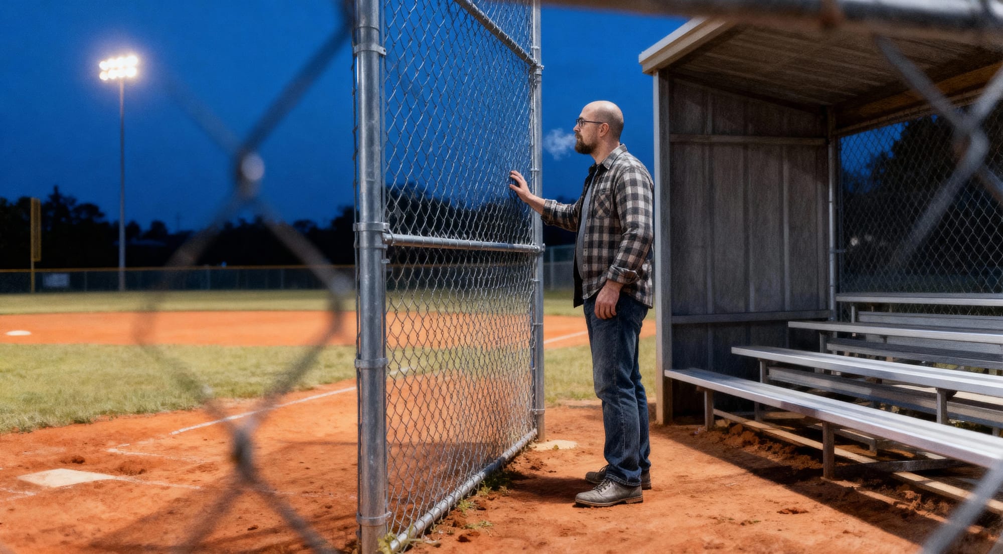 Ignoring the possibility that Our Handsome Hero feels trapped behind that fence, the only issue I see is the now-it's-here-now-it's-not fence in the foreground.
