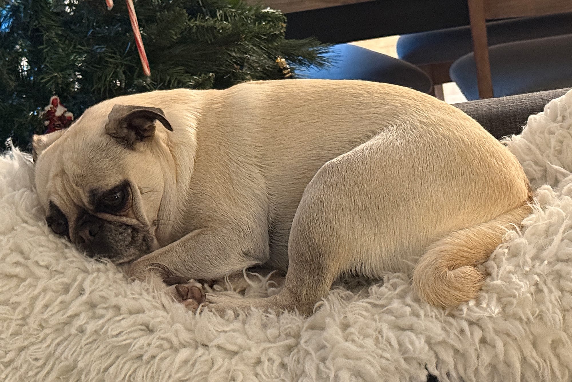 The next morning, the tent is shaken so the piles of snow are loosened. The Camper then clears a path for the Princess to have a little walk and a pee. This dog is incredible; my three pugs would not set foot on ground as cold and wet as this. Can I swap one of them for Princess PooPoo?