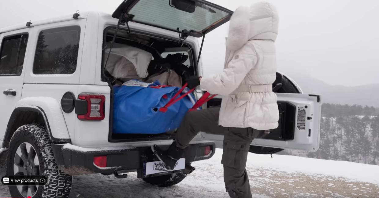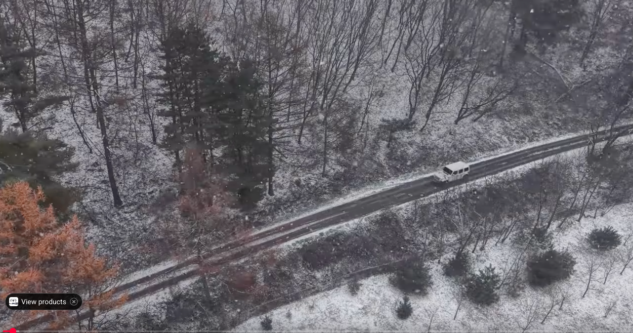 Our lady Camper stops her car on what looks like a perilous cliff edge. She may or may not clear the ground of rain, snow, and ice. This might be the first time you notice the sharp, clear sounds of the video’s third trope: ASMR (Autonomous Sensory Meridian Response) content. The crisp snap of a fastener, the crunch of a boot on the frozen ground – they are front and center in the mix. There will be no dialogue.